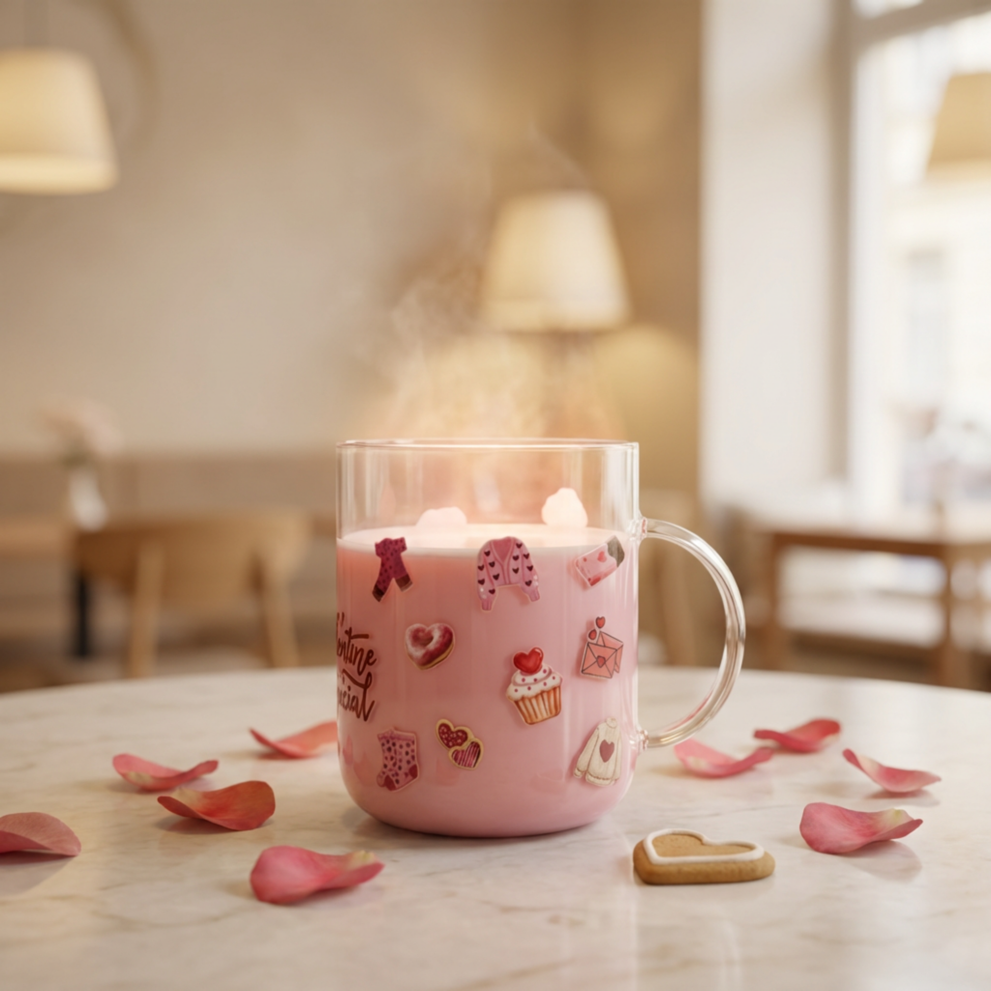 This Valentine glass mug is designed to make everyday coffee moments feel more special. Made from clear, high-quality glass, it features a romantic and modern design that adds a soft, elegant touch to any coffee or tea routine.